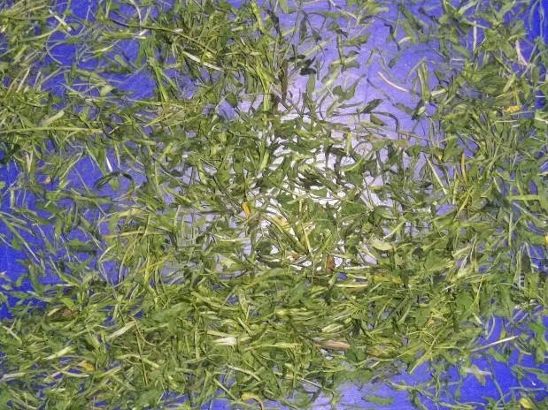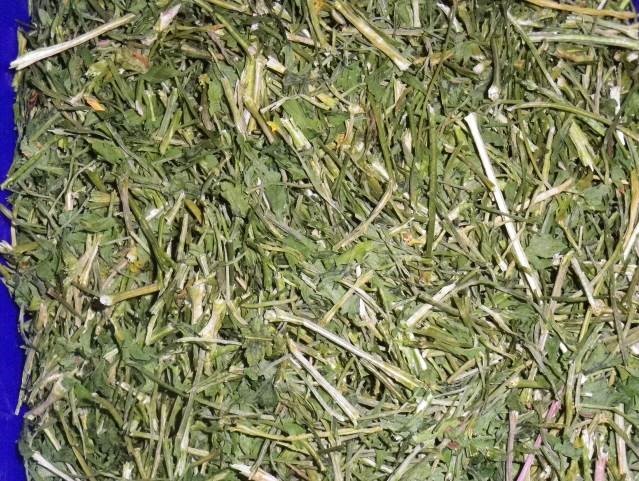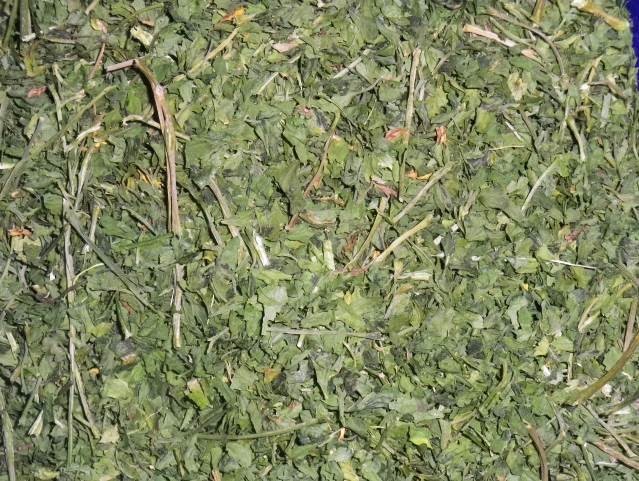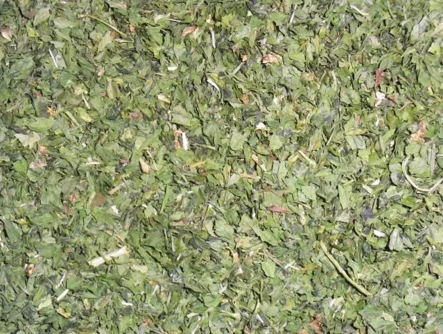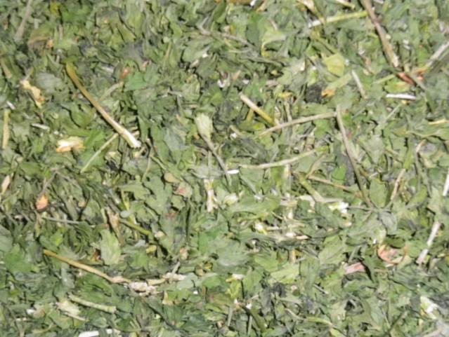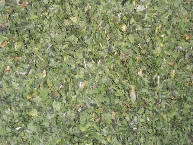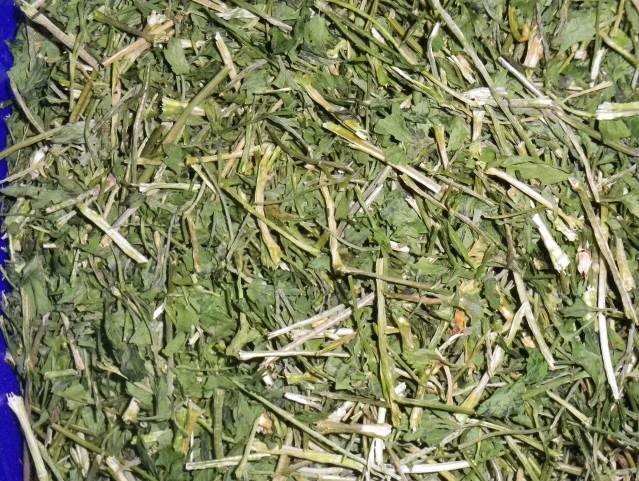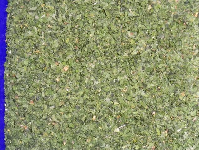 Bemenő alapanyag: Szárított petrezselyem levél+szár (erősen szármaradványos!)
