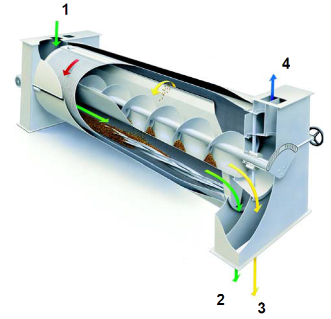 A berendezés vázszerkezete statikus igénybevételre méretezett, profilos acélból készül, melybe kialakítást nyert a beömlő és a kifolyó egység is. Ez a konstrukció 2 db triőrhengert tartalmaz! Mindkét triőrhenger Æ 900 mm, valamint l=3000 mm geometriai méretekkel rendelkezik. Egy triőrhenger 4 db egymáshoz kapcsolt triőrszegmensből áll.