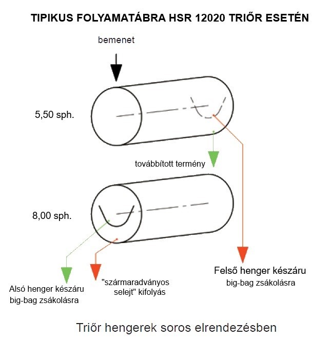 2 db triőrhengerrel! Bemenő teljesítménye: 10-12 T/h (búza esetén)