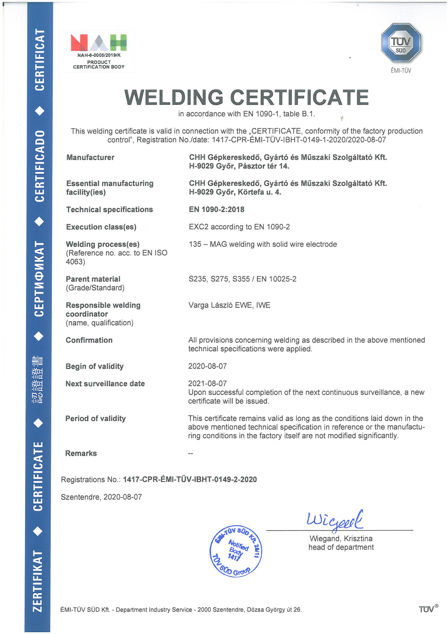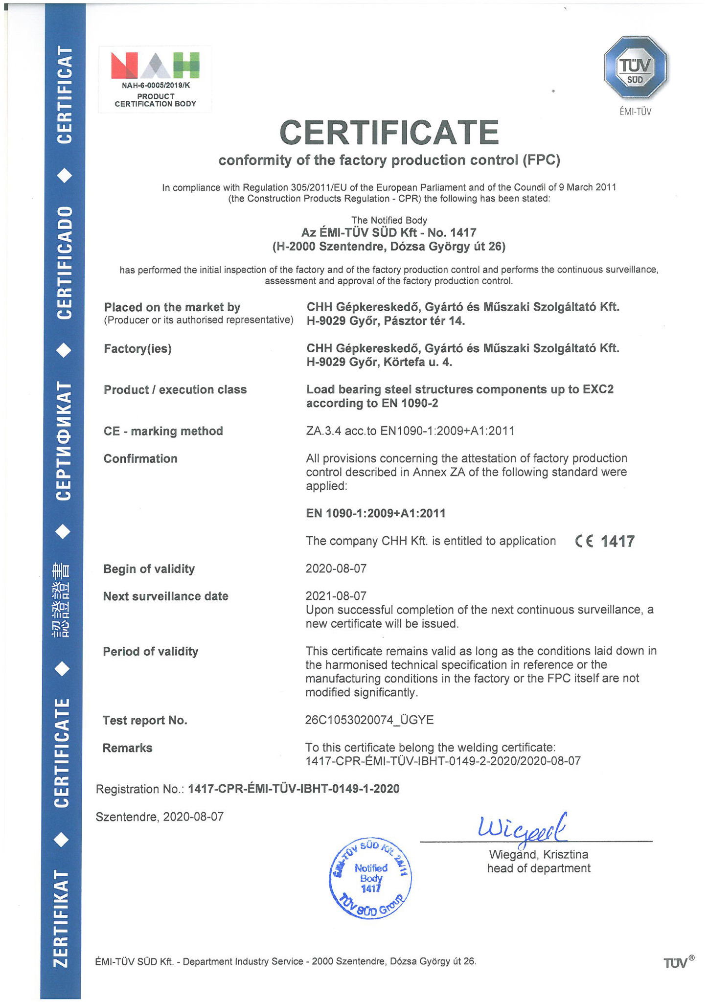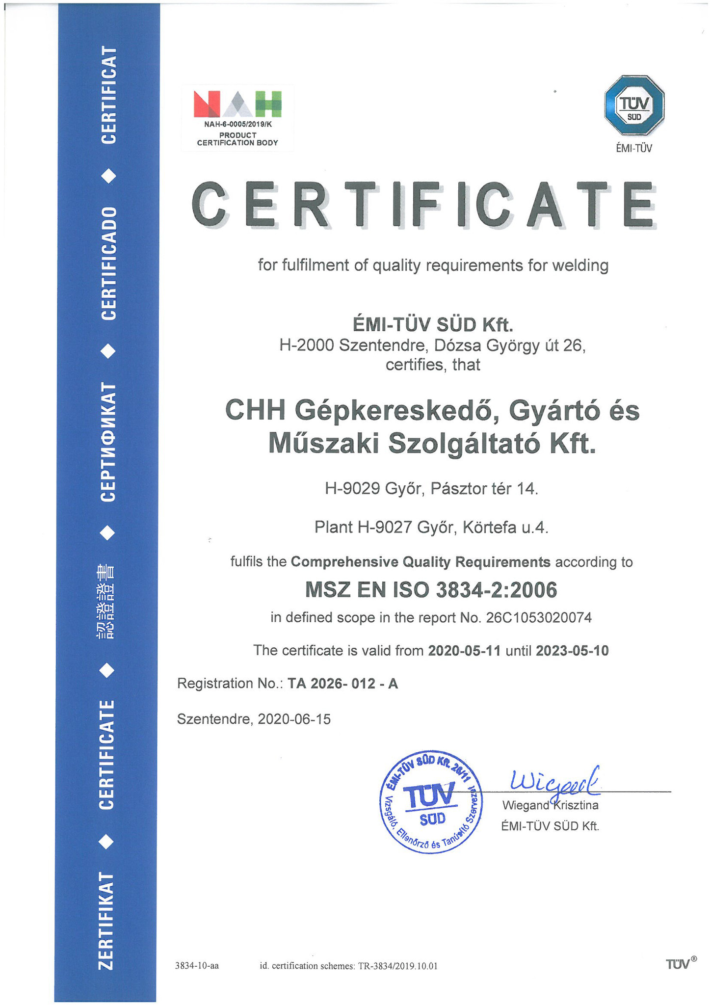A CHH Műszaki KFT elkötelezett a szakmaiság és a magas minőség mellett. Gyártási színvonalunk emelése érdekében a jövőben ISO irányelvek mentén végezzük gyártási folyamatainkat. Magfeldolgozó technológiát támogató hegesztett acélszerkezetek- és egyéb mezőgazdasági kiegészítők gyártása és szerelése hegesztőüzemünkben MSZ EN ISO 3834:2:2006 szabvány szerint történik. 2020 augusztusában bevezettük az EN ISO 9010-1 gyártásközi minőség tanúsítást. A CHH Műszaki KFT a további piacszerzés érdekében elsősorban a gyártási tevékenység fejlesztését tűzte ki célul. A modern fém megmunkáló üzemünk fejlesztése lehetőséget ad a hosszú távú, stabil, kiszámítható fejlődésre.